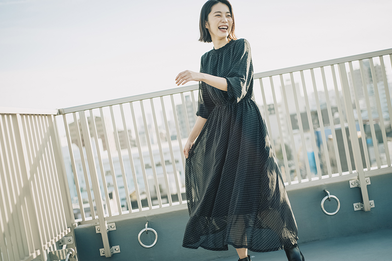 そこで、まずファッションコーデの前に、お腹に力を入れてきちんとした姿勢で立つことを意識しています。ウエストやくびれはあるので、姿勢を正すだけで全然違います。靴に関しても、ヒールを履くと変な歩き方になってしまうので、ペタンコ靴やスニーカーを履いて、モデル歩きをするように心掛けています。(37才)