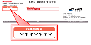 お客様番号は商品お届け時に同梱されている明細書に記載されている数字です。