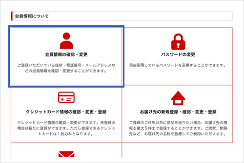会員情報(お名前・お届け先・電話番号等)が変更になる場合は、お客様ページにてご変更ください。