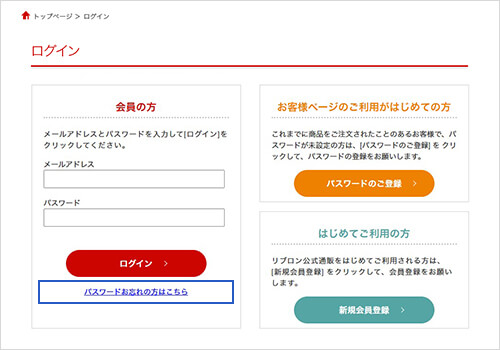 リブロン公式通販をはじめてご利用されるお客様は、[新規会員登録]ボタンをクリックして会員登録をお願いします。