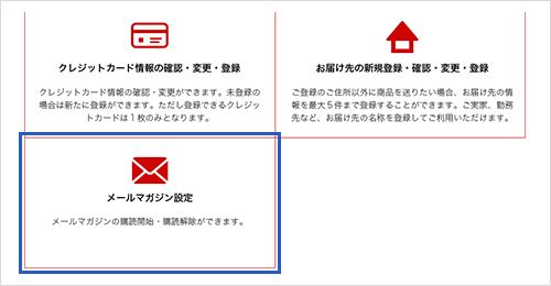 お客様ページの[メールマガジン設定]から配信を希望するメールマガジンにチェックを入れてください。