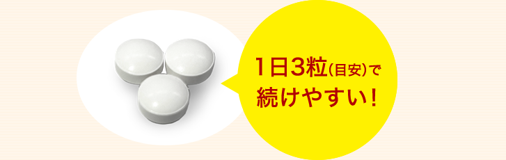 | 「ジョイントアクティブ」はダブルの軟骨成分を、弊社の製剤技術で成分を1日3粒(目安)に凝縮。 摂りやすさ、続けやすさにもこだわりました。 | |